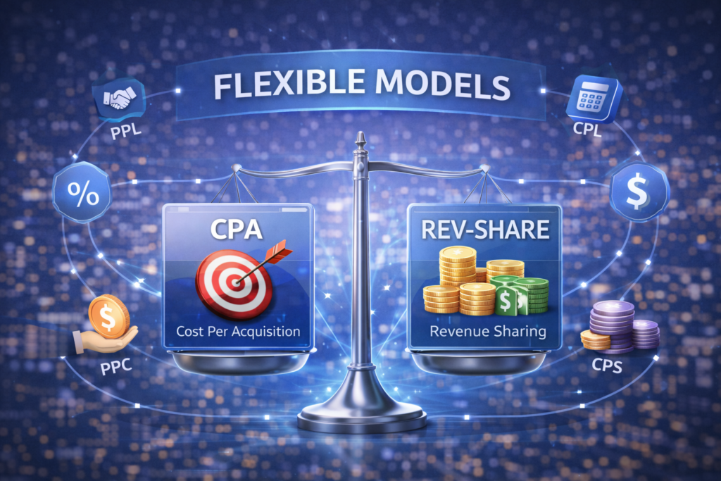 We can discuss a range for affiliate models that best suit your industry and the deals on offer – include CPA, CPM, Rev-Share and more.